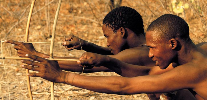 Els bosquimans viuen en el desert del Kalahari, localitzat en el sud d’Africà. Estan dedicats a la cacera i la recol·lecció de fruits i de arrels silvestres. No disposen de cabanes i es refugien entre els matolls. El seu nom probe de bushmen que en angles significa “Home dels matolls”.